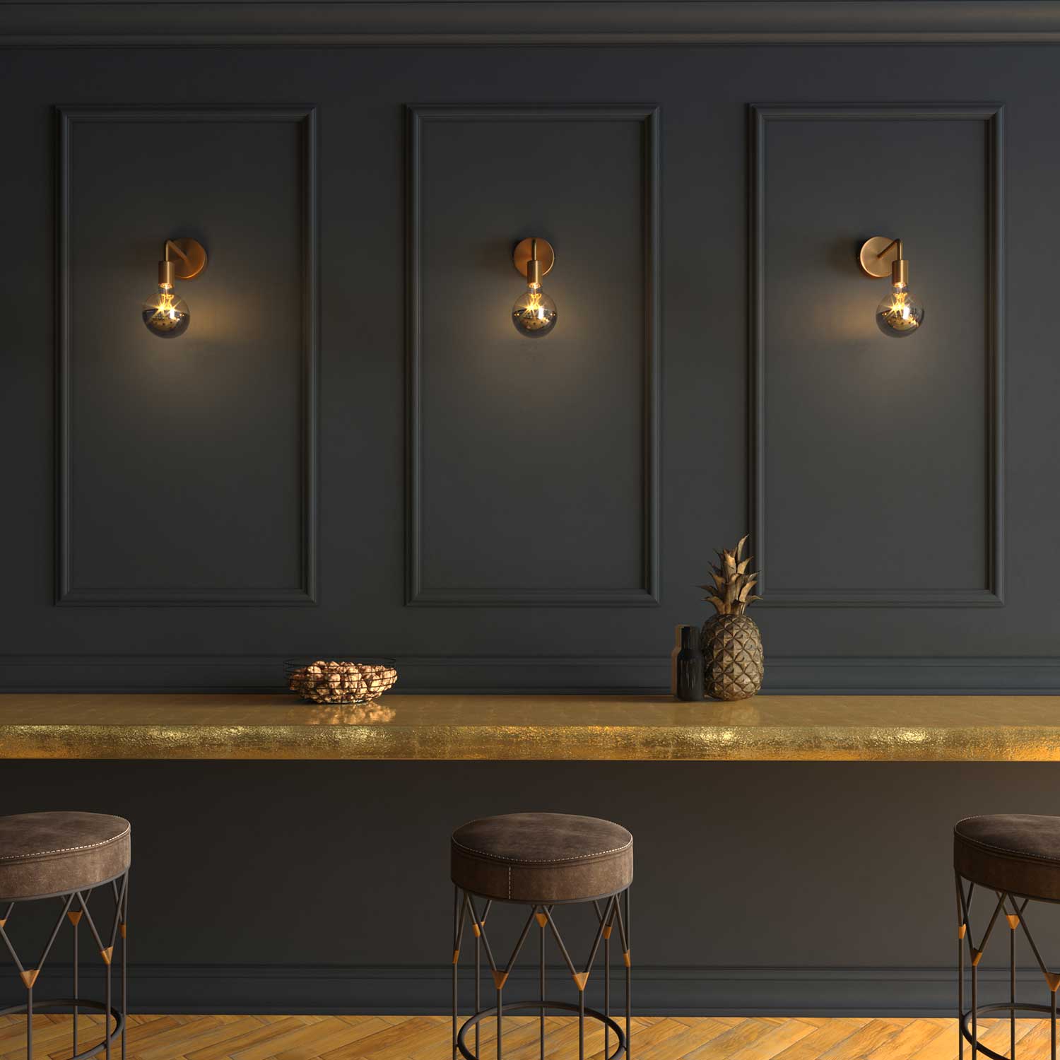 Förlängningar är inte bara en funktionell accessoar: de bidrar till den visuella balansen i hela systemet. Finns i flera metalliska ytbehandlingar och blir en del av formspråket, i harmoni med omgivningen och lampans koncept.