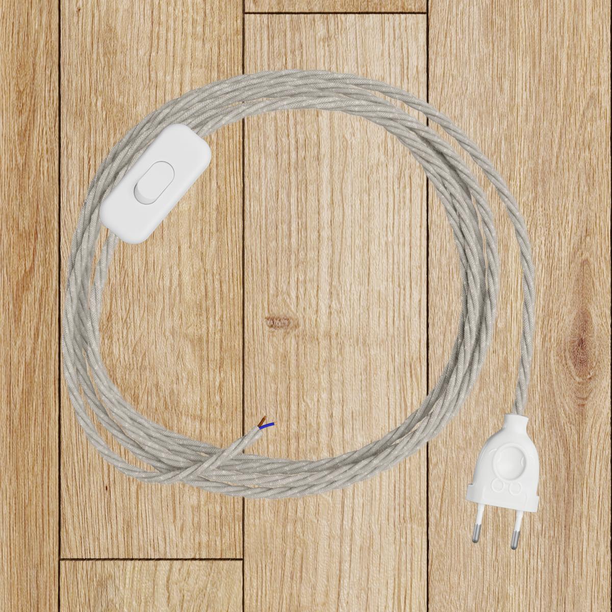 Câble textile : 2.04mt. [XZ2TN01] Câble textile Blanc mélangé lin - L'Original Creative-Cables - TN01 tressé 2x0,75mm / 3x0,75mm - N° of cores: 2x0.75