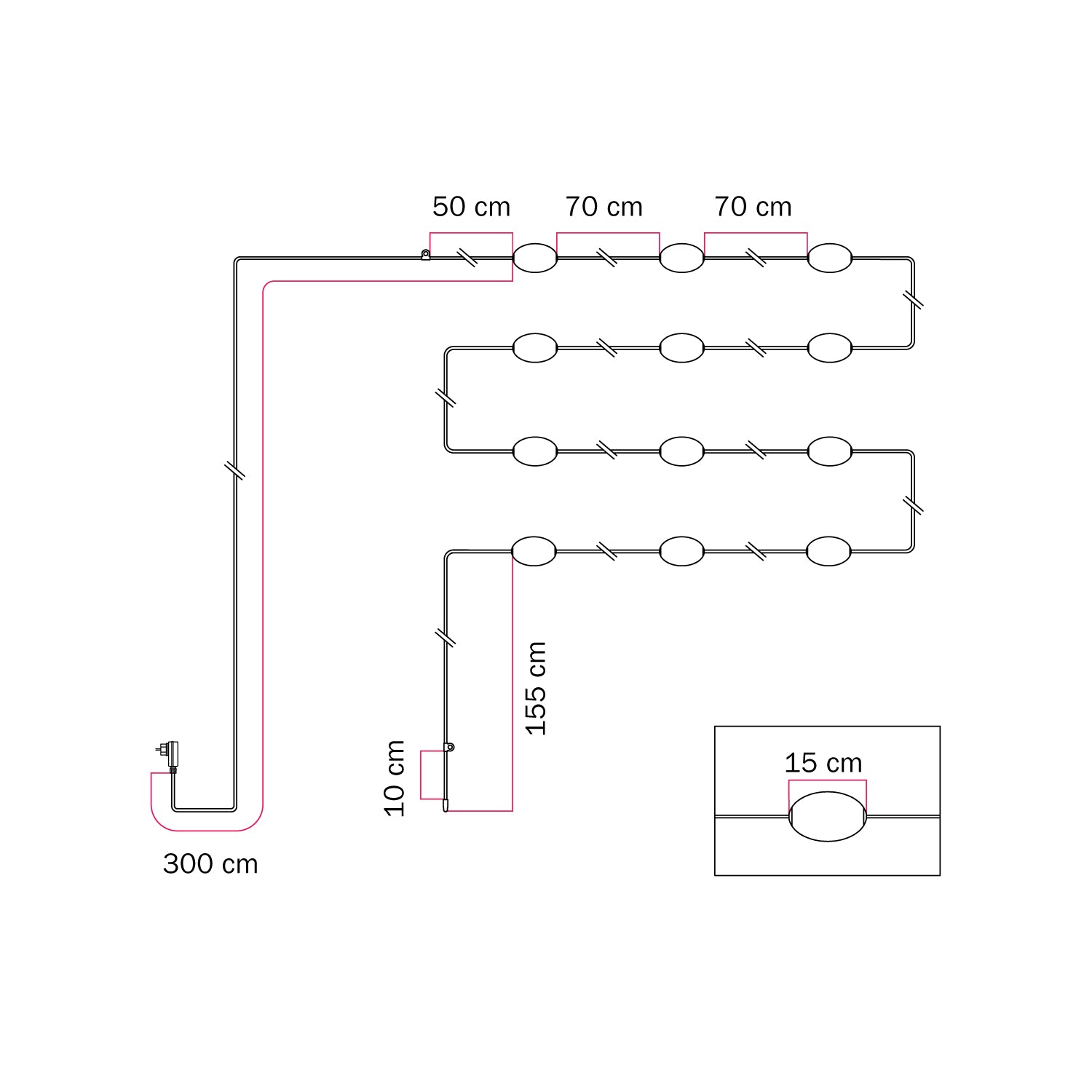 Ljusslinga för utomhusbruk IP67 består av: