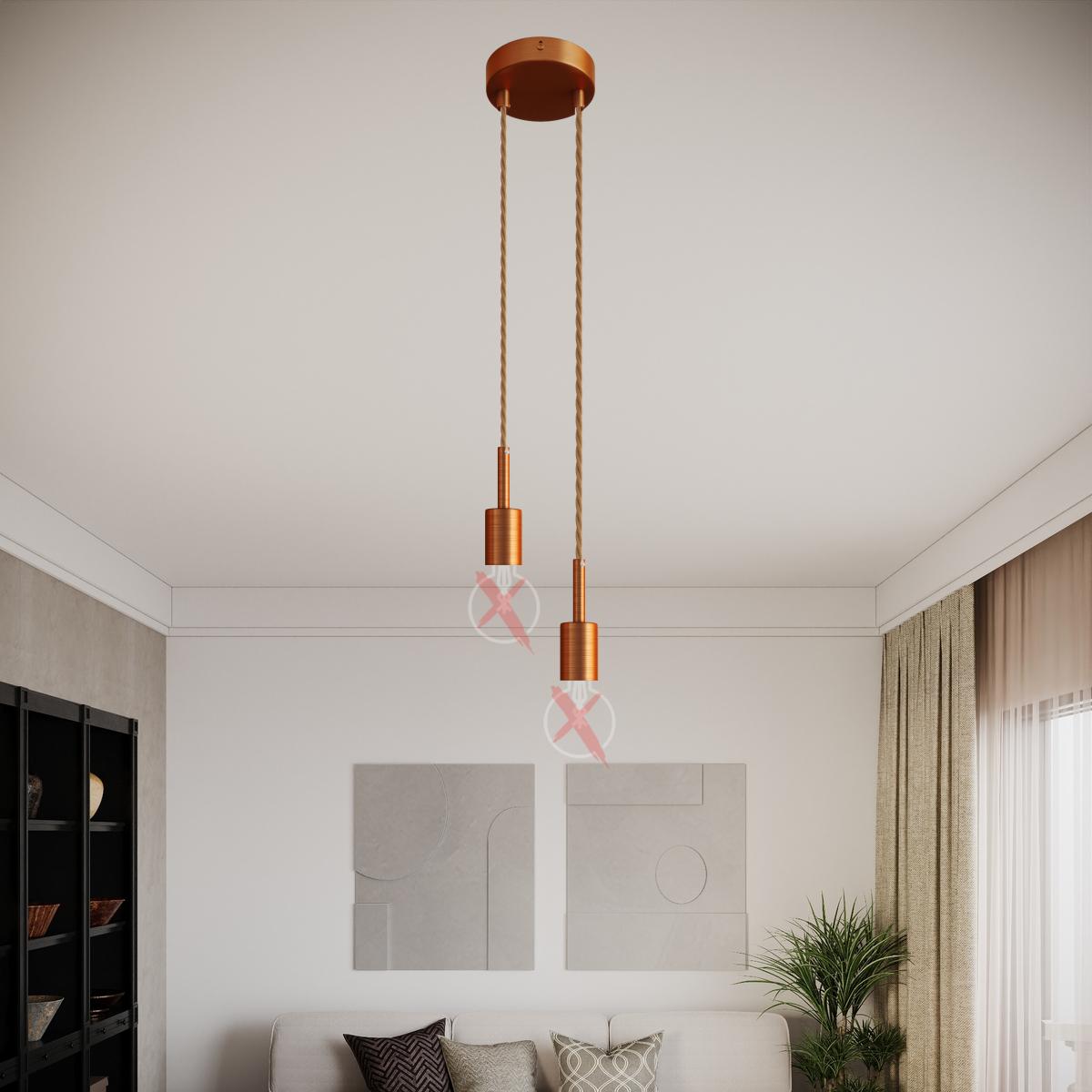 Portalámparas izquierda : 1X [KBM4011RASTERM4] Kit portalámparas cilíndrico de metal E27 prensaestopa 7cm - Acabado: Brushed copper