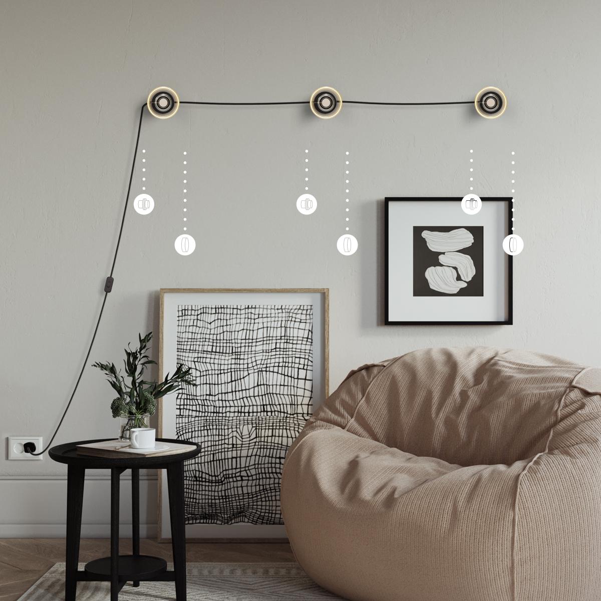 Cable B: from 1st lo 3th light point : 2.3mt. [XZ2RC04] Cotton Charcoal Black Textile Cable - The Original Creative-Cables - RC04 round 2x0.75mm / 3x0.75mm - N° of cores: 2x0.75