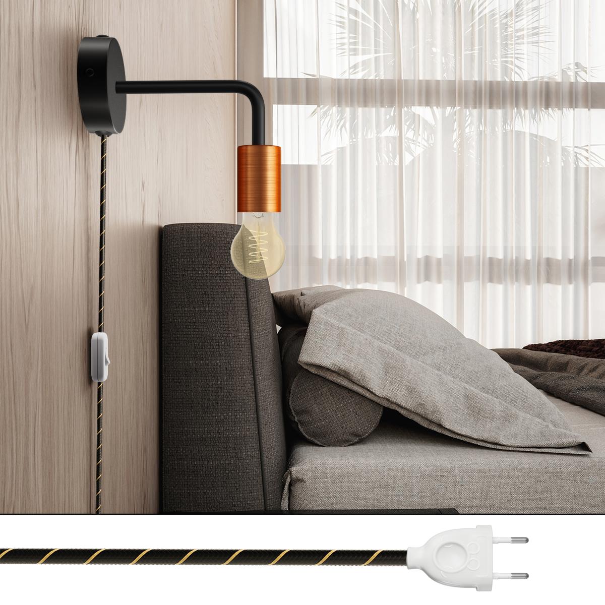 Douille : 1X [KBM4011RAS] Kit douille E27 cylindrique en métal - Cable clamp: Conical, Finition: Brushed copper